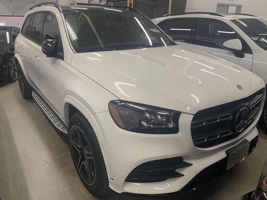 2020款奔驰GLS (配置|询价)450白黑 配置:详细配置:豪华包(前排座椅通风,第二排电动遮阳帘,四区空调,柏林之声音响,电吸门,现实导航增强,360环车影视)暗夜运动包(AMG运动外观,自适应阻尼系统,AMG双五辐熏黑运动轮毂,运动刹车系统,发光踏板,AMG脚垫,全车外观黑色组件(包括前分离器,格栅横梁饰板,侧后视镜,侧窗玻璃,车顶纵梁和后保险杠内衬)) 科技包(抬头显示,MBUX室内助手)前挡风玻璃加热 真皮仪表