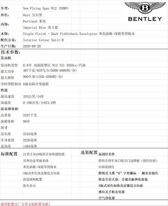 宾利飞驰 (配置|询价)W12作为世界顶级豪华轿车,其豪华与舒适的本质是永恒不变的。宾利飞驰一直以来因车厢的雅致(参数|图片)而获得了卓越的声誉,将高贵典雅的气质与温馨舒适相结合。文章底部有经销商联系方式,微信同号,感谢您的添加,每天更新。