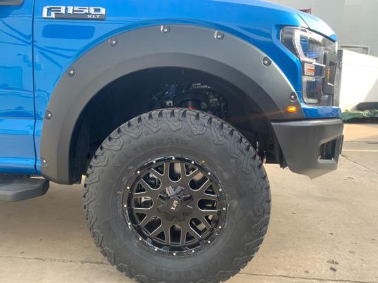 下面是改装以后效果,升级改装了猛禽整体外观套件,悬架升高,减震器,个性定制21寸大轮毂。