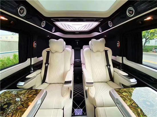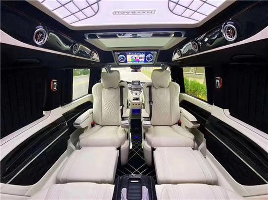 奔驰V260L改装迈巴赫VS680高顶无隔断七座,内部装饰充满法国式的浪漫,九宫格灯珠镶嵌的椭圆形豪华顶棚造型设计气势磅礴,沿车身走向,两端与驾驶室隔屏和后门相衔接,形成古典对称的流线型图案。奔驰V250改装商务车全车新款电动精美布艺窗帘、控制车内电器的触摸屏操作,无不体现至尊豪华的商务形象,7座,家居、商用适合不过、Nespresso咖啡机,对车主的冷暖饮食需求关怀备至。