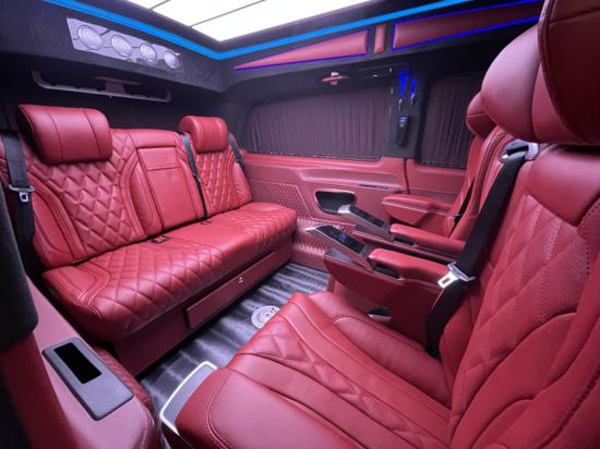 奔驰威霆Vito改装7座高顶隔断迈巴赫VS980版商务车,全新奔驰威霆的灯光设计也是映入视野采用六宫格顶灯和星空顶灯搭配,光纤氛围灯营造宁静安宁的休息气氛。全新奔驰威霆改装VS980具有绝佳的空间设计,让商务出行愈加放松可调整的座椅设计能根据理论需求灵活改动,满足各种类型的运用恳求。