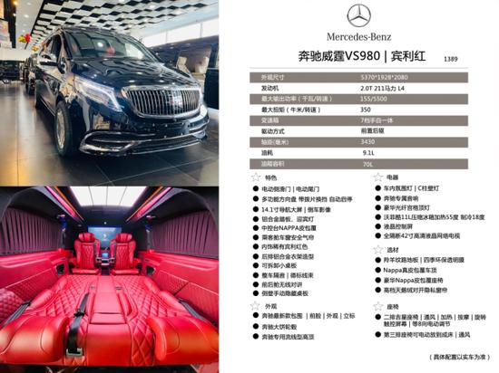 奔驰V (配置|询价)S980商务车高顶隔断7座全部采用真皮制作,豪华木饰装点,带有按摩加热通风功能。后舱前为两个独立航空座椅,第二排座椅安装进口首席航空座椅,加热通风按摩功能齐全,最大限度的减缓您的乘车疲惫。八向电动调节:电动头枕,电动腿托,前后电动调节,电动靠背调节
