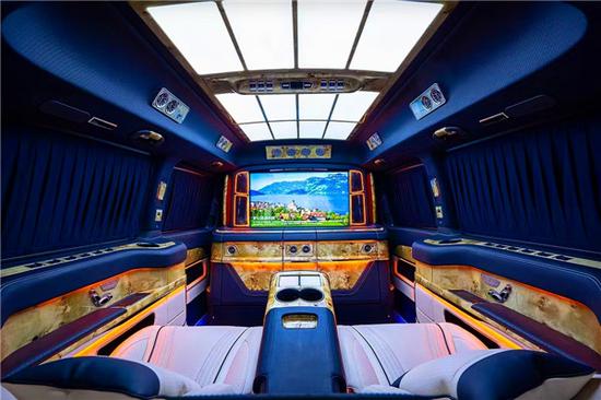 圣母峰凯旋版高顶四座双色升级款驾驶舱。雀眼枫木饰板妆点,视觉流畅美观。中控风格延续奔驰V级 (配置|询价)设计,在用料方面整体更换为更高层次的真皮、实木材质。精致奢华,每一处细节,都极其讲究。