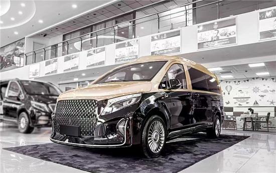 这款奔驰凯旋版高顶商务车属于限量版私人定制车型,名字叫”圣母峰凯旋版“,意思为天空女神(圣母)之意。首先来看一下前脸部分,前脸的造型是参照了凯旋门的设计。奔驰圣母峰凯旋版全车定制了高顶扰流套件,全新圣殿星慕格栅立体感十足,255颗烫银电镀,阳光照耀下非常闪耀。