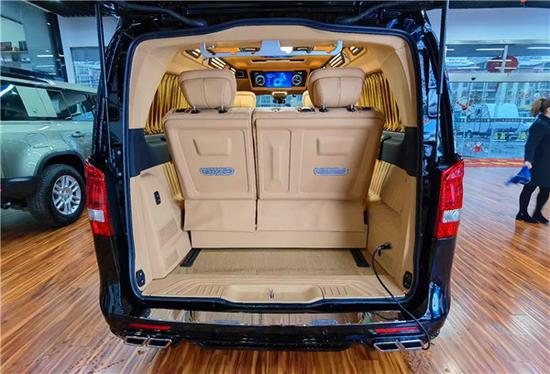 进入后舱,立刻就会被它的豪华绚丽而征服,柏林之声,整车环保真皮包裹,金网花地板铺设,豪华感无处不在。全部采用真皮制作,豪华木饰装点,装有按摩加热通风功能。后舱前为两个独立航空座椅,后为一组沙发座椅(可电动展平,形成一张舒适的沙发床)。