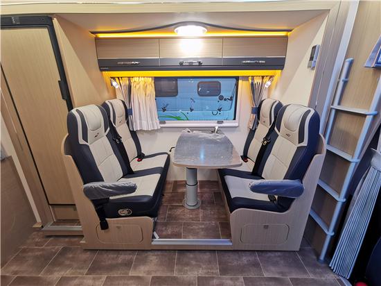 瑞弗V820双扩展房车采用国产依维柯欧胜 (配置|询价)底盘,3.0T动力总成,最大功率105Kw,匹配Hi-Matic 8速自动变速箱,与玛萨拉蒂等豪车同款。最大总质量4490Kg,标配胎压监测和定速巡航,额定载客6人。整车外形尺寸(长宽高)5990*2495*3200mm,