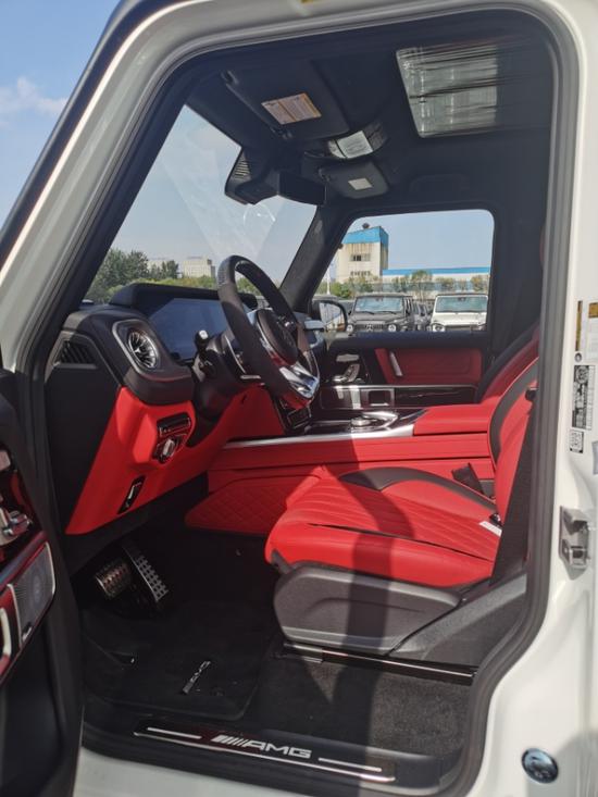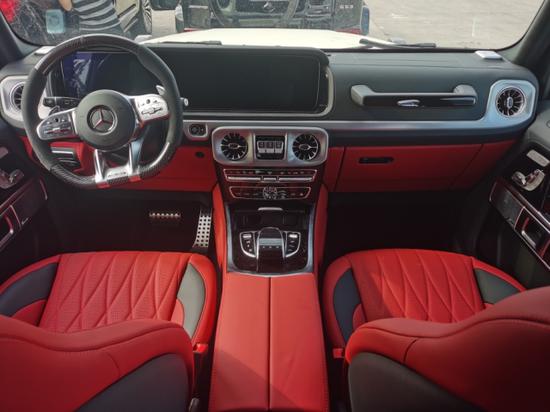 2020款奔驰G63 AMG档次、质感和科技配置都明显提升全新奔驰G级的内饰相比老款有了明显的提升,采用了奔驰最新的双屏幕式设计,全液晶仪表盘和中控台屏幕都达到12.3英寸,同时内饰质感和工艺都有了很大的进步。中控涡扇式空调出风口也颇具设计感,车内的高档皮革内饰以及标有V12钻石图案设计的座椅、车门面板和脚垫,无不彰显着车主的尊贵身份。