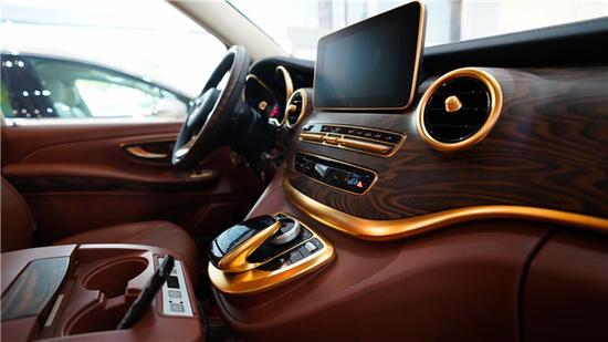 内饰独有精美的做工与合理的布局,均选择豪华软触真皮内饰配搭高光红木纹装饰,常见的功能性按钮都遍布在驾驶者触手可及之处,为驾驶者提供了很大的方便性,这样的设计更利于行驶安全。凭借驾驶室管理系统和数据系统,(COMAND),导航,360度换车影像,电话,音频 ,视频以及众多功能均清晰的呈现在8.4英寸高分辨率显示器上,一幕了然,更方便操作! [品质体现在V260L的各个细节,门板上的黄金装饰突显高贵质感,驾驶室更为驾驶员提供了全电动8项可调节座椅,并带有3组座椅记忆和通风加热功能。
