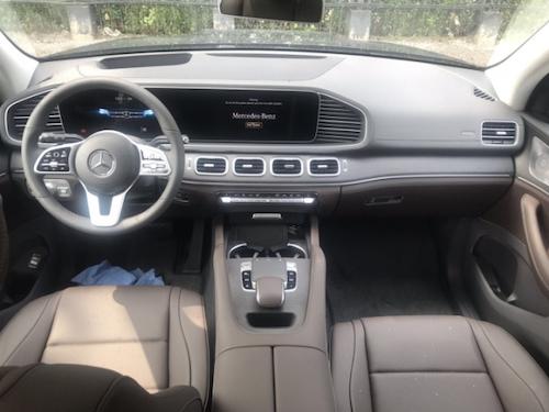 20款奔驰GLE450加版用的是贯穿式中控台双屏设计,12.3英寸的双液晶显示屏带来的科技感爆强,并且搭载了奔驰最新的MBUX人机交互系统,采用搪塑,皮革,实木,金属和碳纤维材质,三幅式平底方向盘动感十足,头顶一个全景天窗,座椅用的是双色搭配的运动风格座椅,舒适性和包裹性也比较好。行李厢常规容积825L,扩展容积为2055L