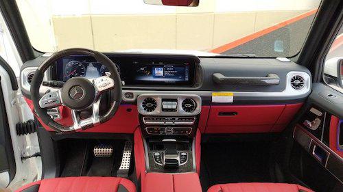 内饰配置:红黑菱形格座椅,AMG碳纤维装饰,AMG性能方向盘,碳纤维方向盘,独家内饰包(菱形格座椅,真皮仪表盘,AMG徽章的头枕与地垫,主动多轮廓前台座椅按摩、加热、通)