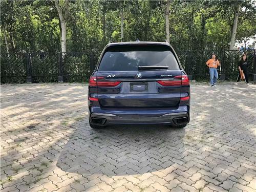 宝马经典的双肾进气格栅,在面积上扩大了很多,几乎占据了X7 的整个车头,看起来十分霸气,而且X7对 前脸大灯组还进行了升级,车头大灯采用的是矩阵式激光大灯,无论是视觉上还是照明度上都得到了很大的提升,因为是7座车,X7的车身侧面看起来非常长而且 厚重,有些类似于路虎的设计风格,大量的平直线条装饰着X7的车身,让这款车的霸气程度提升了很多,车尾的设计则是非常简洁,车标下一条贯穿式的镀铬饰条将车尾一分为二,层次感比较分明,尾部排气造型为双边单出式排气,具有一定的运动感。