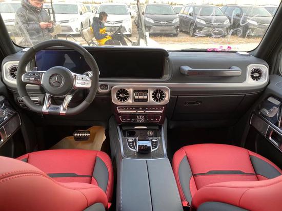 21款奔驰G63豪华精致的真皮包覆提供了足够的舒适性和支撑性,通风和加热功能让乘客免受高温和寒冷的煎熬。中控台多处均采用碳纤维材料覆盖,带彩色TFT显示屏的AMG仪表盘、AMG主菜单和单独的挡位显示器以及采用白色照明的AMG门槛。名贵的选材及精湛的内装令人拍案叫绝。