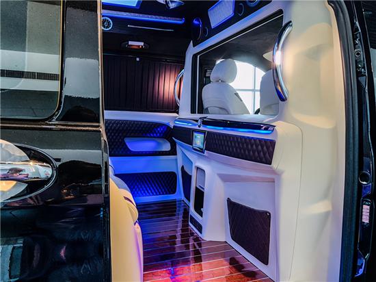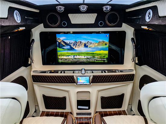 2020款奔驰威霆房车贵宾舱则用采用豪华皮革、麂皮绒包覆,前后舱采用电视,柏林之声5.1殿堂级音响环绕系统+32寸高清升降电视的经典车娱组合,给您舒适与娱乐相结合的享受。