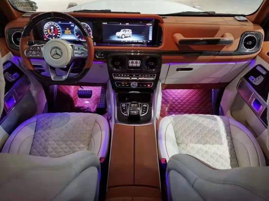 2020款奔驰G550加长5.4米整车是在普通版奔驰G63 (配置|询价) AMG的基础上进行了加长,而改装这台车的厂商是加拿大的著名车辆制造商。外观上保留了G级最基本的外貌,只把车身加长,整车长度达到了5.98米,比劳斯莱斯幻影 (配置|询价)还长了。它最大的变化是内装,这是需要根据车主想法来定制的,可以布置成私人飞机的豪华座舱。
