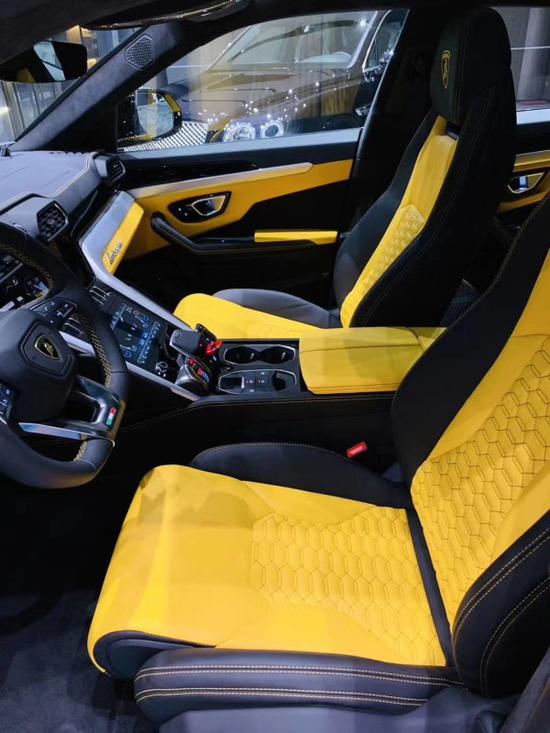 兰博基尼Urus的内饰采用独特的双色配色方案,搭配座椅上的六边形Q-Citura缝线和兰博基尼盾形刺绣标识,以及碳纤维和黑色阳极氧化铝细节。全电控座椅是珍珠漆特别版的专属可选配置,带有通风功能的Alcantara材质座椅能够带来超凡舒适体验。