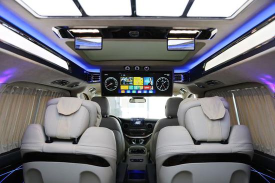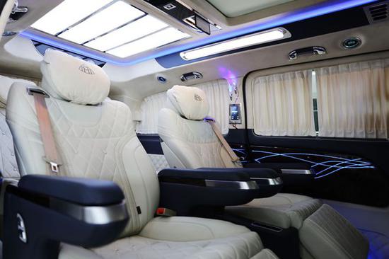 后排座椅采用高端定制的商务座椅,前排座椅后背搭载折叠的小桌板,方便后排乘客处理商务文件或者在车内就餐。专门定制航空头等舱按摩座椅可以全身气筒按摩,舒适感受,更能多项调节,通风加热。疲乏时也可展开腿托,舒适休息。奔驰威霆改装商务车座椅设计得宽大舒适。奔驰威霆改装高顶隔断7座商务车后排排两个独立,并带脚托、座椅记忆,电动升降头枕、座椅通风加热功能,享受堪称“头等舱”级别,设计体贴入微。更多的个人车主或是改装厂家,愿意将奔驰威霆打造成一款更加符合高端定位的豪华商务用车。