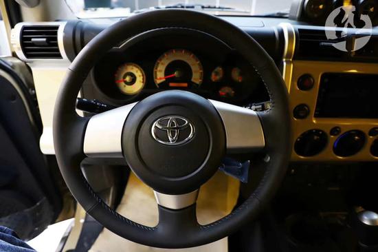 丰田FJ酷路泽的内饰与其外观相一致,同样洋溢着时尚与运动的气息。仪表板采用简单而有力的直线条,粗壮的水平线条和垂直线条相交,形成了平面与弧线融合的美感立体效果,给人一种时尚而粗犷的感觉。