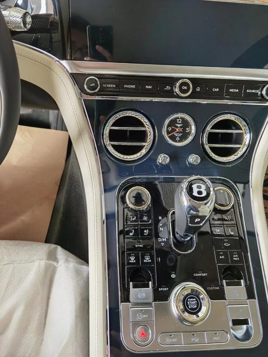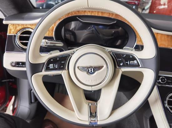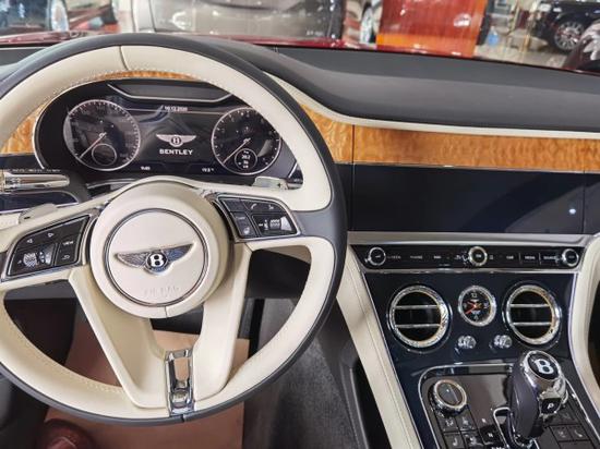 20款宾利欧陆GT采用了革新式的宾利三面翻转中控面板,出入车内仪表板中央好像没有屏幕一样,按下发动机启动按钮,仪表板中央的饰面无声滑动的翻转呈现出一块儿12.3英寸的中控显示屏,三辐式真皮多功能方向盘,复古式仪表盘,百年灵时钟彰显宾利独有的魅力。