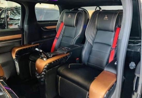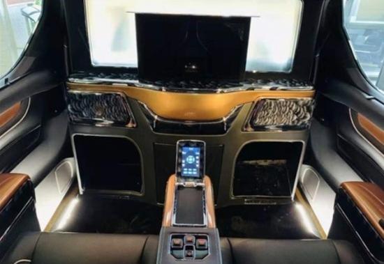 日本工匠将不同粗细的金银粉或贵金属粉末和漆混合,然后再进行描绘,呈现华丽的视觉效果,随着技法日益丰富逐渐形成末金研绘工艺。埃尔法将末金工艺改良,并在汽车产品多变的曲面上得以呈现。埃尔法 · 蒙娜丽莎|黑天鹅皇家贵宾舱 商务车配置表,电子影音设备一键式超静音24寸高清液晶升降电视,车载触控屏中控系统(人机交换系统),智能隐藏储物柜,智能隐藏式极具现代化奢华酒柜,一键式电动升降雾化隔屏,德国原装进口内置集成调光器,阅读灯。内饰商务配置,豪华手动伸缩隐藏航空铝镁合金铝制小桌板,全车豪华紫檀木装饰贵宾舱紫檀木地板,后排奢华原装进口一键式记忆电动折叠航空首长席(加热,通风,气动按摩),四季实用透明环保地膜全车立体大包围。 实用型进口304不锈钢衣钩。后舱电子雾化窗帘。