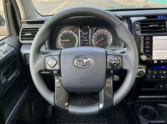 丰田4Runner内饰方面,整体还是非常像普拉多 (配置|询价)的,中控面板采用了更多的银色镀铬设计,4Runner为了提升档次还在内饰加装了木纹饰板,中控整体为黑色,更加运动,配色也更耐脏。整体中控的设计是丰田家族式设计,用在这个级别的越野SUV上,易读易用,结实抗造。