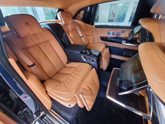 劳斯莱斯幻影加长版后排才是重中之重,电动折叠板和后排影院系统被巧妙的隐藏在前排座椅的椅背后,只需轻触按钮,便可以自如收放桌板和影院系统,带来完美的剧院体验。后排中央固定扶手做了重点优化,其中国可容纳带有威士忌酒具的酒柜、香槟酒具和冷藏箱,方便乘客畅快交谈,后排座椅角度可以任意调节,这一设计让客户无需转头便可视线自如交流。整个车厢内饰全部以最精美的高档材料装饰,使车内极具触感。
