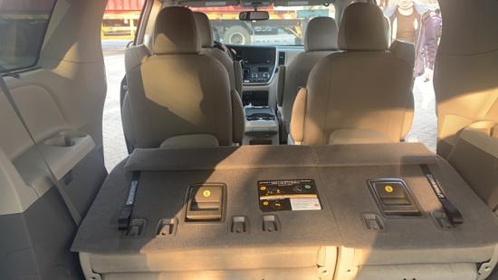 我们来到车内看下,这款车内饰都是灰色,前排座椅加热,无钥匙进入,一键启动,主驾驶8向座椅调节,副驾驶4向座椅调,前排座椅是有加热的哦!多功能方向盘,还有脚刹!桃木内饰!定速巡航!7寸触控中控屏!三区空调,6喇叭!这款塞纳两驱墨版和SE是单天窗,LE的是没有天窗的,LTD为双天窗,塞纳从天窗就可以分辨出它的型号了!值得一说的是这款车的第二排,在塞纳家族里只有墨版真皮版车型配备了第二排的腿拖,后排的手动遮阳帘也是标配!