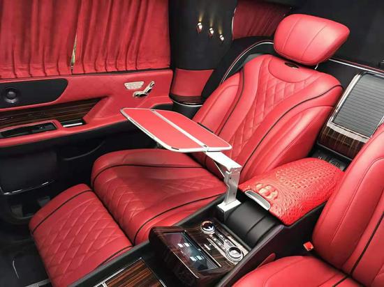5米98车长领袖一号全车德国Napa真皮、高级美国进口游艇PVC高度耐磨防滑地板、40寸超大屏高清电视(自动升降)、后藏法国劲浪5.1声道环绕立体声发烧音响、支持高清蓝光播放、支持高速USB高清电影移动硬盘播放、支持4T高速硬盘蓝光高清电影播放、以及中控电动隐藏迷你咖啡吧、中间吧台内7寸触摸智能全车电器智能控制屏、后舱高级酒吧以及超大容量冰箱(压缩360度可调式阅读灯以及梦幻满天星、私密电动窗帘、后舱前后双侧防撞安全气帘AIRBAG、前后舱无线私密对讲电话、以及指纹识别功能的密码箱以及精钢手工抛光处理的LOGO铭、尽显领袖气质、