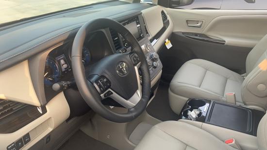 我们来到车内看下,这款车内饰都是灰色,前排座椅加热,无钥匙进入,一键启动,主驾驶8向座椅调节,副驾驶4向座椅调,前排座椅是有加热的哦!多功能方向盘,还有脚刹!桃木内饰!定速巡航!7寸触控中控屏!三区空调,6喇叭!这款塞纳两驱墨版和SE是单天窗,LE的是没有天窗的,LTD为双天窗,塞纳从天窗就可以分辨出它的型号了!值得一说的是这款车的第二排,在塞纳家族里只有墨版真皮版车型配备了第二排的腿拖,后排的手动遮阳帘也是标配!