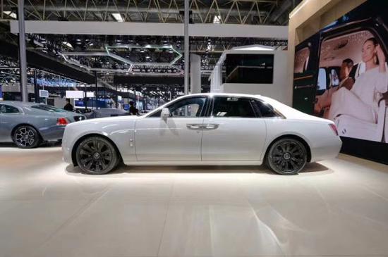 侧面来看,新款劳斯莱斯Ghost十分修长,车头部分很长,车顶线条从C柱向后备箱倾斜更大,斜面车窗饰条和修改过的轮毂设计等较小的细节完善了新款Ghost的外观。与老款Ghost相比,新款Ghost车身长度增加了89毫米(3.5英寸),达到了5,546毫米(218英寸),也宽了30毫米(1.18英寸),达到了1,978毫米(77.8英寸)。也就是全新Ghost长宽高分别为5546/1978/1578mm,轴距3295mm。