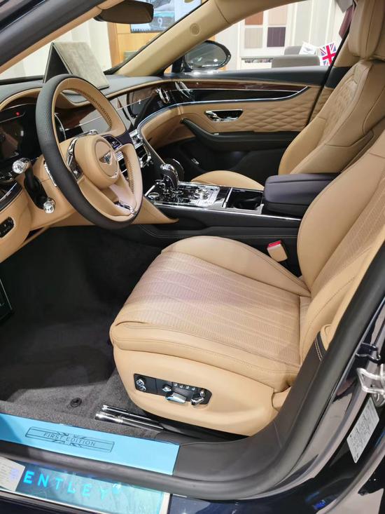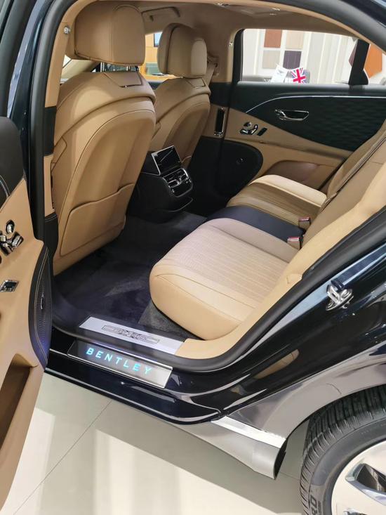 氛围灯套件,宾利旋转屏,头枕刺绣,全景天窗,照明式车标抛光金属色。前面板和车门镀铬装饰条,琥珀木黑钢琴木。