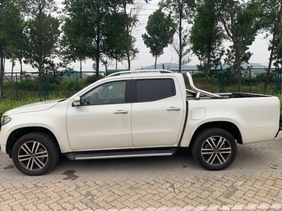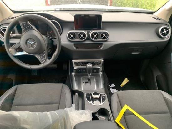 奔驰X级皮卡的外观、内饰变动很多,清亮百搭的白色打底,前脸在保有原版X级的基本风格之外,以黑色炭纤维饰条装饰在中网上方别具一格;车头两侧轮眉向外扩张,搭配冷饰品铆钉修饰,更显不羁。