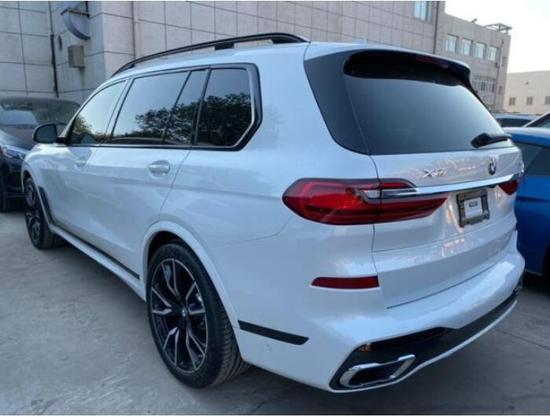 宝马X7采用宝马全新家族设计,双肾的进气格栅面积相当庞大,细长的大灯组采用开眼角的设计,使新车横向视觉感受更宽。新车灯组内部布局精致,配备了矩阵式激光大灯,点亮后效果可佳。新车在前杠下方的设计格外有气势,配上镀铬条的融入,显得新车有着十足的豪华感。