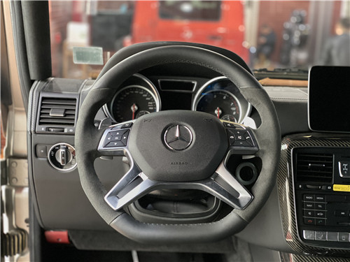 G级越野车的内部延续了外部引人注目的风格。高级的设备、先进的技术、实用的控制按钮和精致的手工制作工艺赋予车辆内部奢华的舒适感和极具吸引力的优质质感。奔驰G550拥有强度极高的非承载式车身结构。