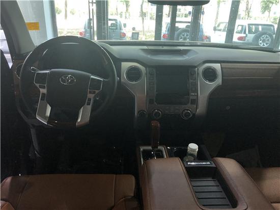 丰田坦途五个小仪表给出了司机应该注意的技术参数,转速表、时速表、油量表、水温表、电池/机油表依次排列,数据显示清晰明了,中控台科技感十足,三辐方向盘延续了家族设计理念。金属、木材、皮革等多材料营造了相当豪华的视觉感受,丰田坦途内饰简洁大方依旧突出了实用特点,室内色彩的精致搭配,让整个内部空间既充满质感又倍感时尚。