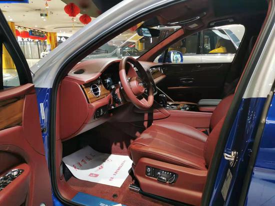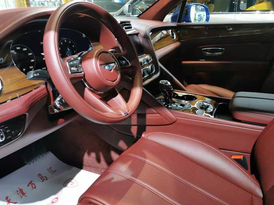 新款宾利添越全新样式的三辐式多功能方向盘,整体质感良好,中控台中央悬浮式液晶屏设计,上方圆形出风口是宾利独有的“牛眼式”出风口设计。新款宾利添越内饰几乎全部被顶级的牛皮包裹,而且全部是由技术优异的工匠纯手工打造,辅以少量的木纹和金属装饰,华贵至极。
