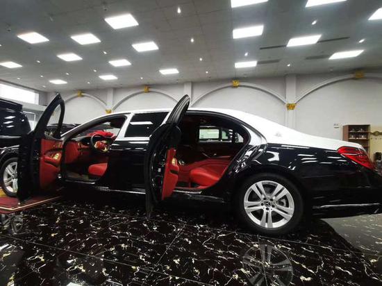 奔驰普尔曼加长前脸采用了家族最新的设计,标志性的3条LED日间行车灯,宽大的镀铬中网,都在表明这不是一台普通的奔驰S迈巴赫,整体的车身达到5.98米,侧面看十分的修长,当然内部空间也是足够的大。