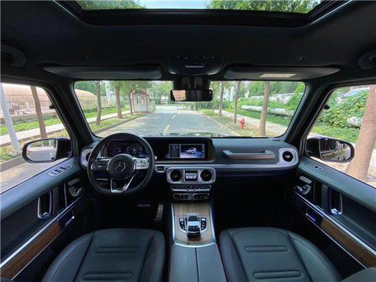 2021款奔驰G500采用了桃木覆盖件加 以修饰,真皮座椅和中控台材料质地上成,与外观呈现两个风格。内饰核心的仪表台整体上也保持了规矩大方的造型风格,与简洁刚毅的外观相统一,既不强悍夸张也不讲究曲线玲珑。