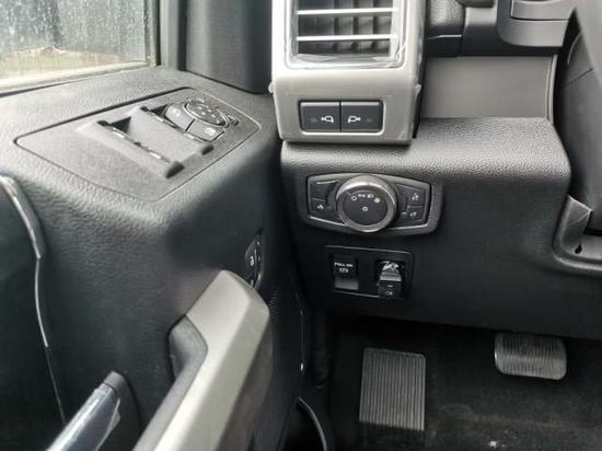 福特F150 (配置|询价)车内配备标准独特的皮革和布艺装饰的座椅,驾驶员侧的电动十向调节。这些座椅同时具备记忆功能。中央控制区搭配了触控式显示屏,其下方则是多媒体控制区及空调面板,采用旋钮+物理按键的组合。中控功能区域可分为三个小控制区,最上端为音响控制及导航控制,中间为收音机调节控制,最低端为空调及座椅加热控制