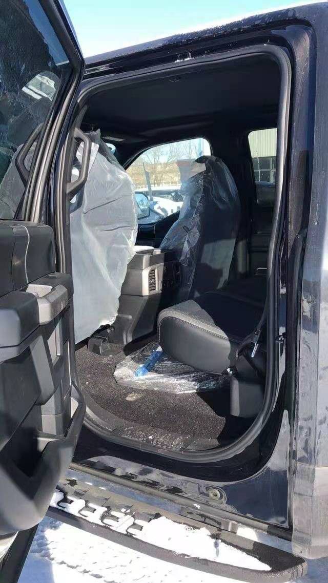 福特F150猛禽内饰采用独特的中控台和门饰板面漆和真皮包裹的方向盘。中控台部分辅以银色饰板装饰,六指针仪表盘的设计有些后工业时代的复古风格。采用带电冷热功能的可记忆式皮革座椅,头枕四向可调,搭配铝饰条和黑色钢琴烤漆内饰。可电动升降的后窗带隔板和电热除霜功能。进口18款福特猛禽F150皮卡真皮座椅包裹性很强,无论是越野还是长途旅行,都很舒服,丝毫不感觉到这大家伙的压抑,二排空间也是十分宽敞,乘坐四个身材高大的乘客没问题。座椅折叠起来可以放一个冰箱,而且门上储物格空间也是够用,虽然不像公羊后排那么豪华,有简易床,但是这种实用的理念就是福特的宗旨。
