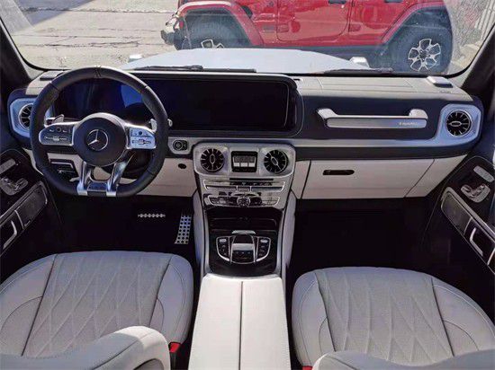 2021款奔驰G63AMG动方向盘是非常美观的,特殊的金属材质点缀,整个方向盘底部是一个平底的造型,在转弯的时候拿手拖着平底的时候还能用上劲,这种动型方向盘是每位车主非常喜爱的一个配件,而从内饰整体来说,整体都是皮子,全部真皮,简约而奢华。 全部真皮都用红线缝边,AMG的动座椅都是红色缝线,两边用红色真皮包裹,甚至连安全带都是红色的,使整车看上去更加动激情。