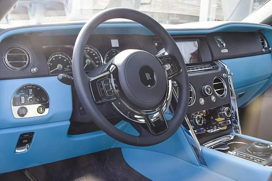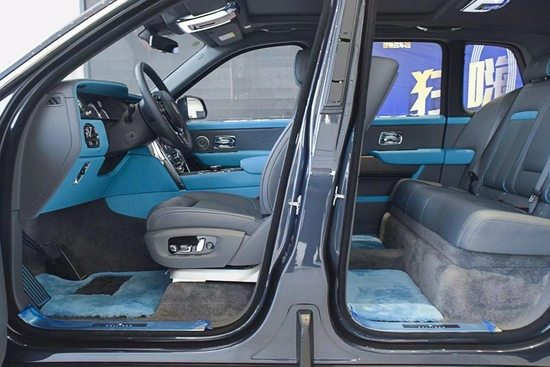 劳斯莱斯库里南内饰大量实木饰板的采用,提升了内饰的档次感。而大面积真皮包裹的设计,则成功的营造出奢华舒适的内饰氛围。仪表盘的设计较为古朴,内部指针清晰可见,外圈还配备有劳斯莱斯珠宝般的装饰环。方向盘沿用了经典的三辐式造型,但是整体设计更加小巧、厚实,并且内部包裹有可加热的柔软材质