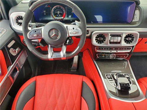 2021款奔驰G63AMG档次、质感和科技配置都明显提升全新奔驰G级 (配置|询价)的内饰相比老款有了明显的提升,采用了奔驰最新的双屏幕式设计,全液晶仪表盘和中控台屏幕都达到12.3英寸,同时内饰质感和工艺都有了很大的进步。中控涡扇式空调出风口也颇具设计感,无不彰显着车主的尊贵身份。
