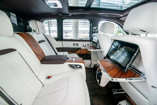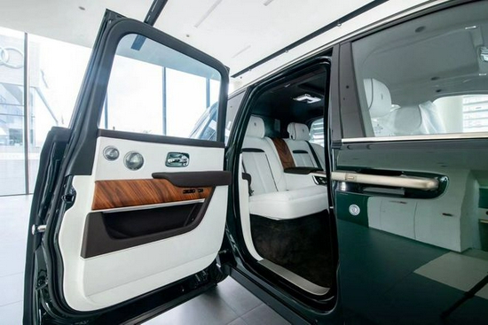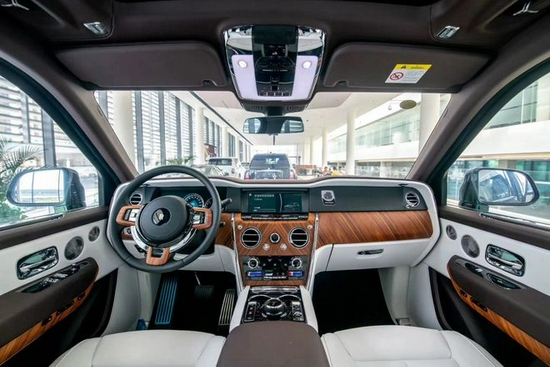 内饰融合了纯正的劳斯莱斯式的奢华和简洁,展现了对称的功能之美。中控面板的边框由手工打磨的金属条包裹。上部仪表板采用全新研发的现代“方格粒纹”黑色真皮包裹。座椅采用简洁而现代的马蹄铁图案,强调座椅的支撑力。整个椅背由一整张皮料塑形,打造出极为立体的表面。