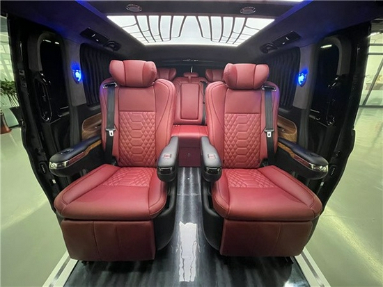 奔驰威霆改装方案有很多种(大致分三种风格:1商务办公接待;2私人娱乐;3私人豪华房车,这三种风格又可以互相叠加、互相交错,最简单的商务风格都很多改装项目:地毯、木地板、真皮座椅、窗帘、大屏显示器、车顶/车侧蒙皮、九宫格顶灯、冰箱、办公桌、等等。智能化特点:航空座椅的调节(靠背、腰托、腿托、脚托、360°旋转、按摩、加热)由触摸屏控制,只为您的舒适和便捷。后排娱乐、办公桌、大屏显示器、放倒试沙发床,由此您可想象奔驰威霆的舒适度、便捷度和豪华程度,也给您在旅途中提供了更多乐趣。