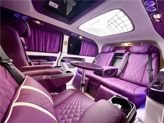 奔驰威霆改装方案有很多种(大致分三种风格:1商务办公接待;2私人娱乐;3私人豪华房车,这三种风格又可以互相叠加、互相交错,最简单的商务风格都很多改装项目:地毯、木地板、真皮座椅、窗帘、大屏显示器、车顶/车侧蒙皮、九宫格顶灯、冰箱、办公桌、等等。智能化特点:航空座椅的调节(靠背、腰托、腿托、脚托、360°旋转、按摩、加热)由触摸屏控制,只为您的舒适和便捷。后排娱乐、办公桌、大屏显示器、放倒试沙发床