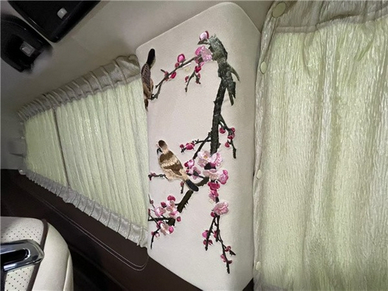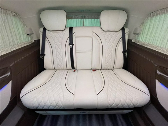 两个独立的座椅采用欧洲进口Nappa小牛皮手工缝制,严格按照人体工程学设计,内置座椅加热、通风、按摩、四段八向调节、180°旋转、座椅记忆、腿拖支撑,乘坐感受非常舒适,宽大的座椅就像是自驾的沙发上一样。