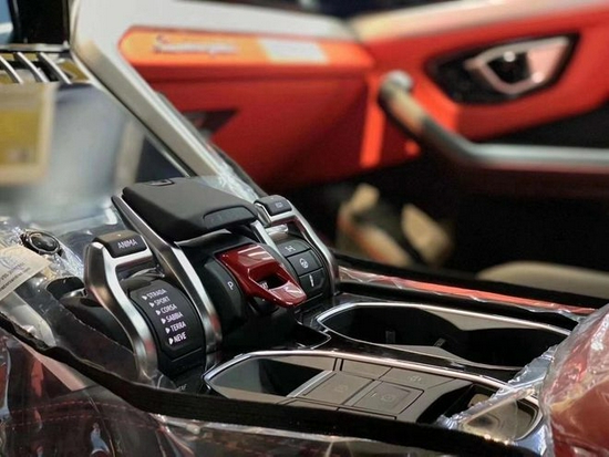 兰博基尼Urus标志性六边形元素随处可见,中控配备上下两块液晶显示屏。该车中控区域采用了类似飞机操纵杆的造型,中间红色启动键采用战斗机的翻转式设计。另外,特别版车型内饰采用了全新的Grigio Keres金属灰色,同时所提供的Sensonum音响系统带有730瓦放大器和17个扬声器。