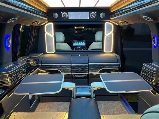 奔驰威霆第二排与第三排之间有可拆卸便捷式商务桌板,可进行商务洽谈,商务洽谈可放置电脑、文件等物品,旅游无聊时打娱乐,使用方便快捷。 奔驰威霆商务车改装需要多少钱奔驰新威霆外观造型大气简约有风度,空间以及舒适度方面的表现,可说是难有出其右者。