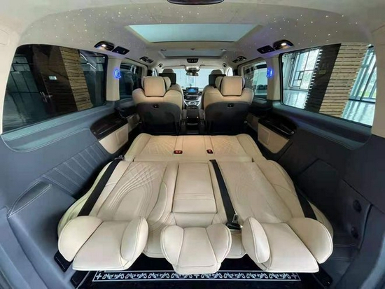 后排三联排座椅,中间躲藏着中央扶手箱,内置有全彩触控屏,使得后排贵宾也能自如的操控车上的功用。一键放平靠背,车舱内又能惊现出一张双人床来。全新奔驰V260的灯光设计也是映入视野采用六宫格顶灯和星空顶灯搭配,光纤氛围灯营造宁静安宁的休息气氛。全新奔驰V260改装具有绝佳的空间设计,让商务出行愈加放松可调整的座椅设计能根据理论需求灵活改动,满足各种类型的运用恳求。