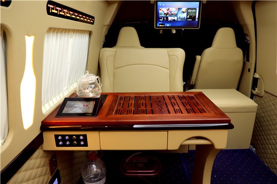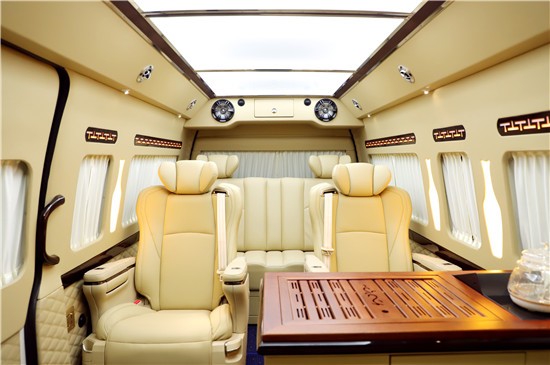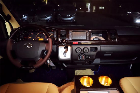 丰田海狮宽畅滑动侧门,与领先商务相谐,乘客出入更自如快捷,富绰空间,长途旅行不再局促而劳累。丰田海狮中规13座白金版无论是车内的舒适性还是静音性都达到了日系车的一个新高度。 [改装适用]移动房车、移动办公室、移动会议室、移动影院、移动酒吧。改装实现商务活动、vip接待、特种设备用车、残疾患者用车、高端企业商务车等。1、半真皮半桃木纹方向盘:2、木纹仪表台:丰田原厂桃木纹仪表台。3、3D实景卫星导航系统:4、司机杂物盒:面板桃木纹装饰,带杯托、储物盒、边缘桃木纹防护栏。5、驾驶舱隔板:驾驶舱隔板半封闭式,包意大利NAPPA真皮。32寸液晶显示器。6、车载冰箱:尼桑碧莲 原装冰箱,可冷冻冷藏,冷冻可达零下18度,冷藏保持5度。3层式车载冰箱罩带雨伞支架。冰箱盖桃木纹装饰,箱体包意大利NAPPA真皮,箱底仿麂皮绒色。7、地毯散件:阻燃、抗静电、防滑、环保。8、豪华首长席办公桌:首长席办公桌桃木纹与真皮结合,桌面带有杯托、220V电源转接盒、对讲机、抽屉、安全扶手、隐藏式电动水壶、小型车载打印机。9、可折叠秘书桌:面板桃木纹装饰。